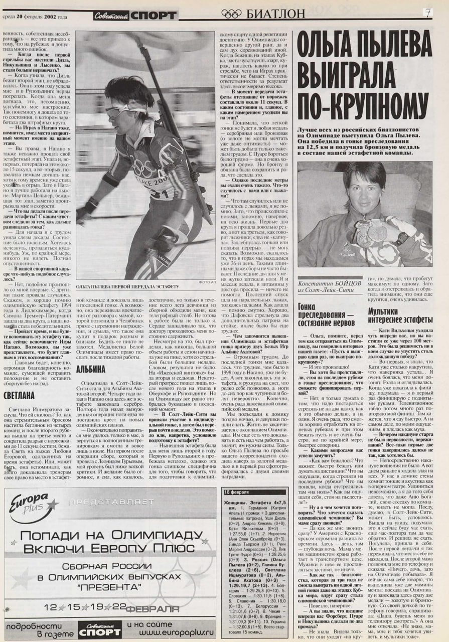 Автор – Константин Бойцов, «Советский спорт», номер 32 от 20.02.2002