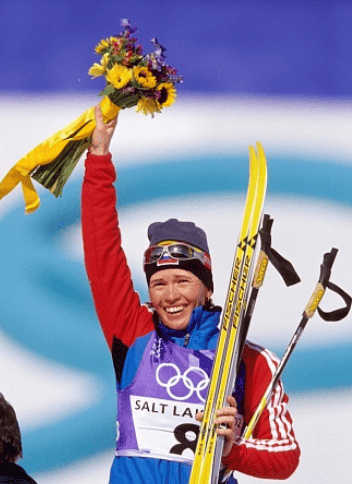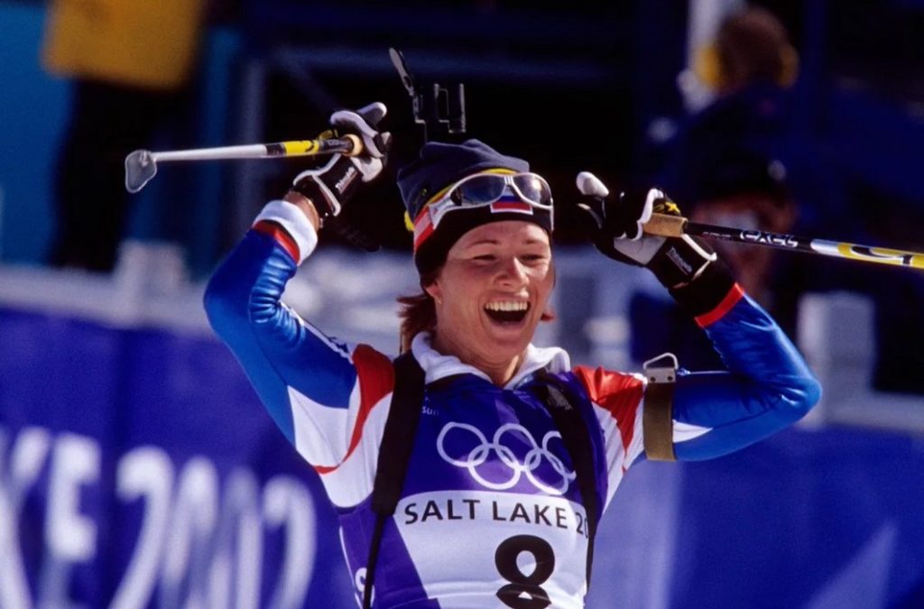 Союз биатлонистов России от всей души поздравляет великолепную спортсменку, а ныне спортивного функционера, и вспоминает ее взлет в Солт-Лейк-Сити и жизнь после олимпийского золота двумя архивными материалами «Советского спорта»: один – сразу после блестящей победы в гонке преследования, а другой – спустя девять месяцев после Игр-2002.